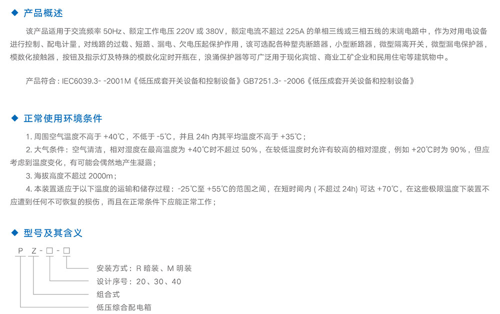 产品符合 : IEC6039.3- -2001M《低压成套开关设备和控制设备》GB7251.3- -2006《低压成套开关设备和控制设备》